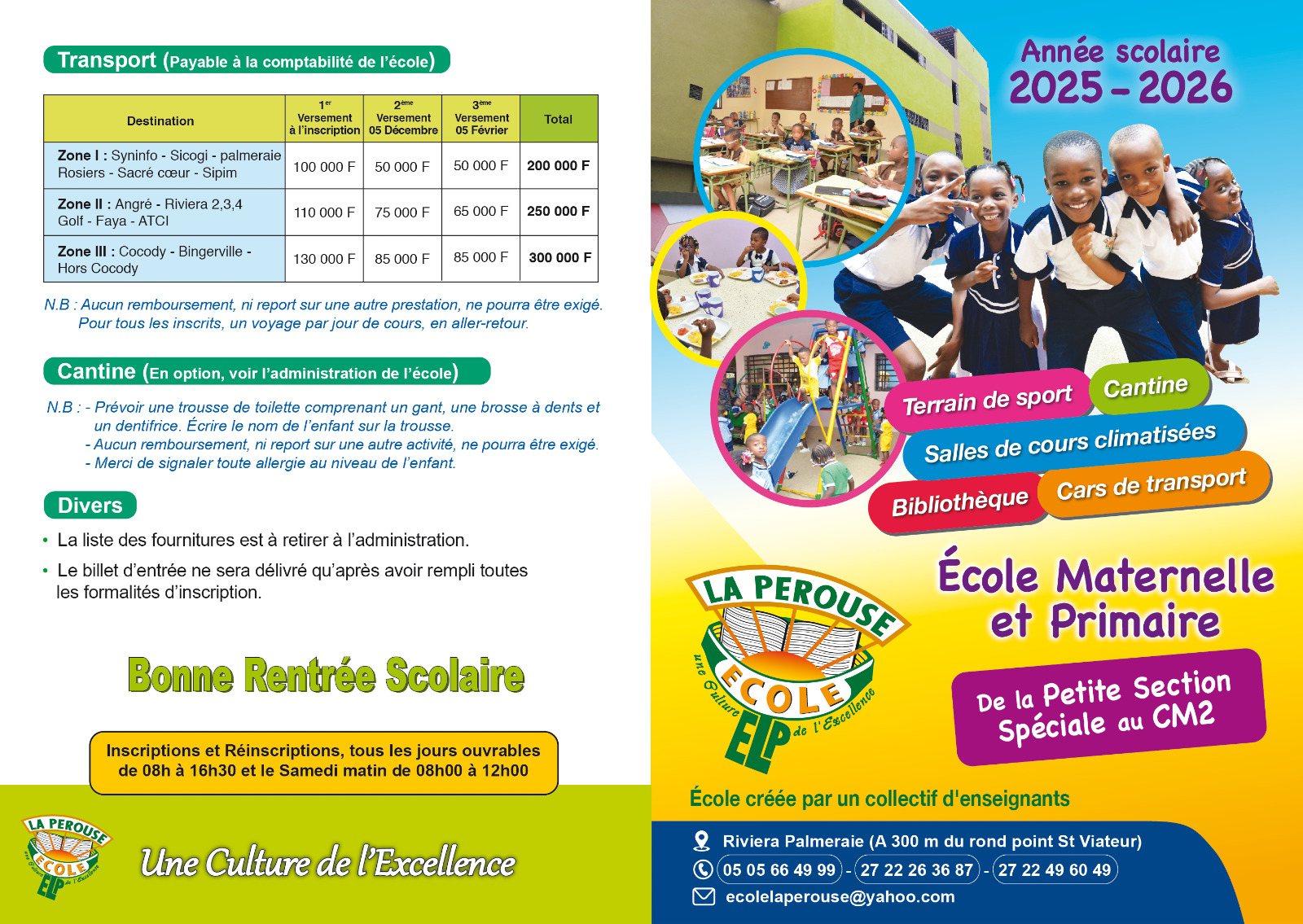 Informations Pratiques Rentrée Scolaire 2025-2026 Comment affecter son enfant en 6ème Infos Collège et Lycée Télécharger le document Infos Maternelle et primaire Télécharger le document Tenues Scolaires